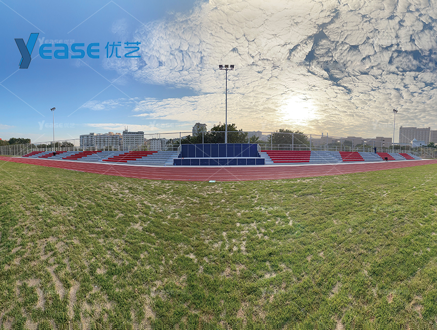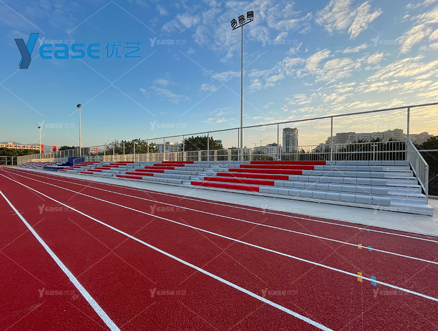 堅固耐用的鋼結構看臺系統(tǒng),滿足戶外場館長期使用與高承載要求。