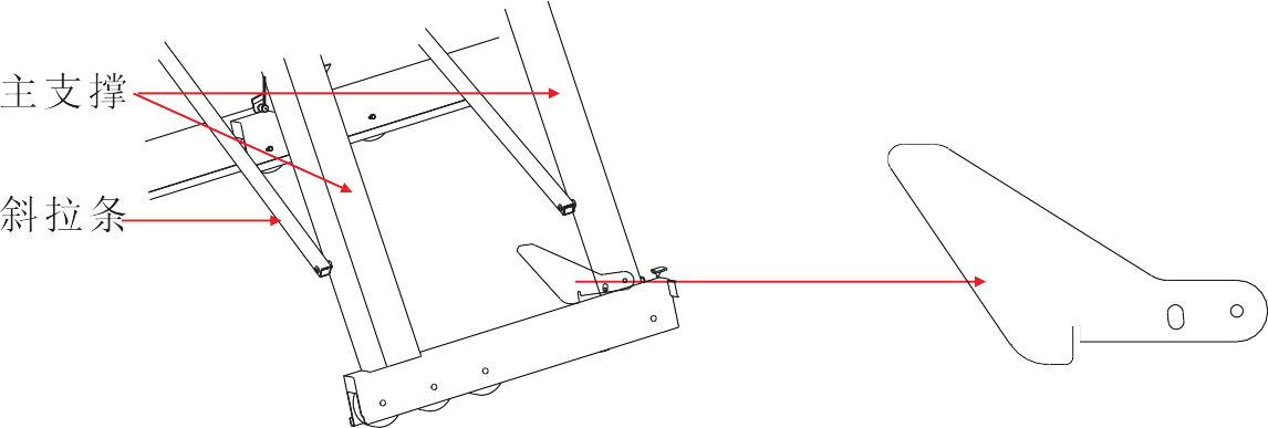 | 12.可調(diào)節(jié)支撐輪 13.電機鏈接桿 14.尾部支架 15.電機 16.主支撐 |
